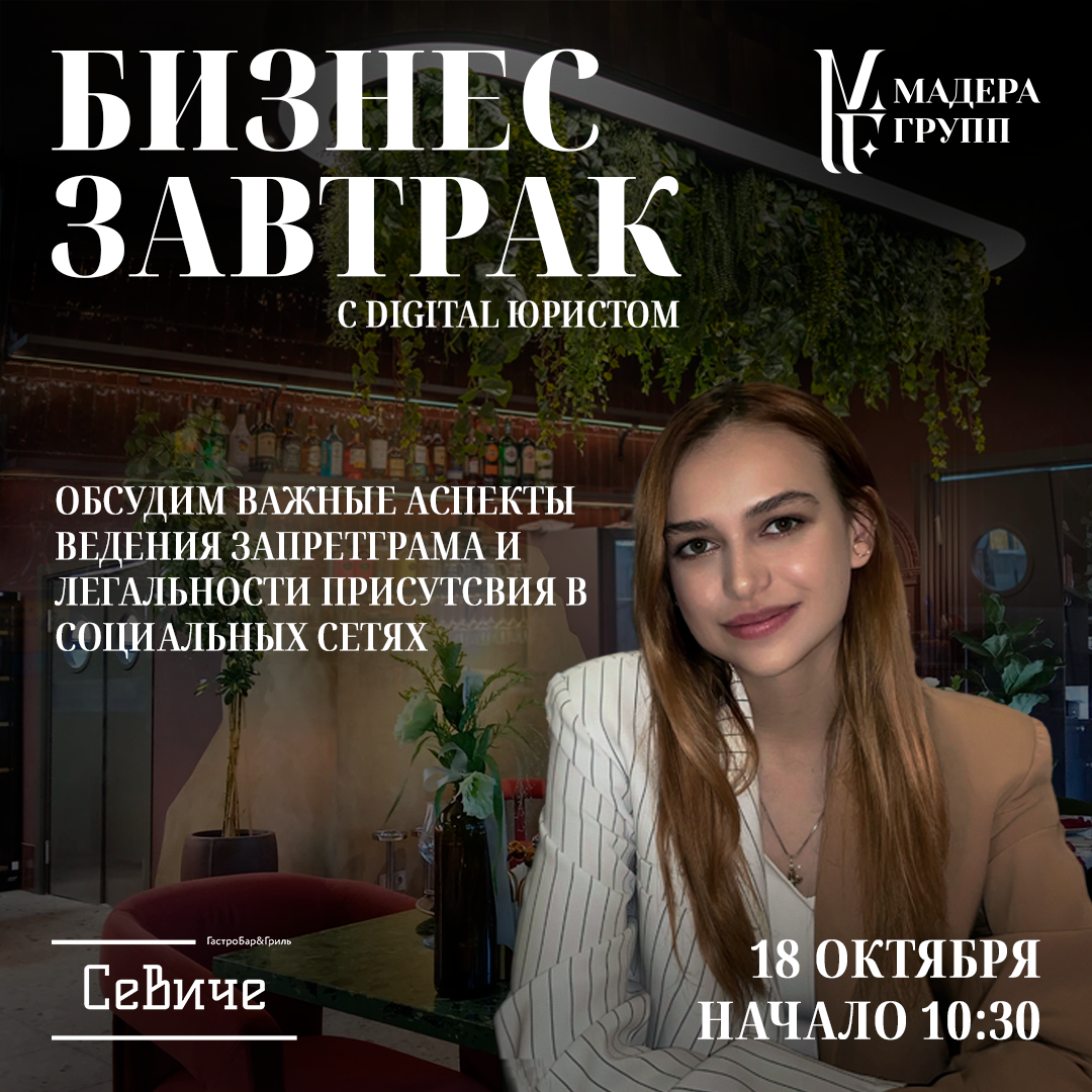 Приглашаем вас на уникальный бизнес завтрак с дижитал юристом, на котором мы обсудим важные аспекты ведения запретграма.